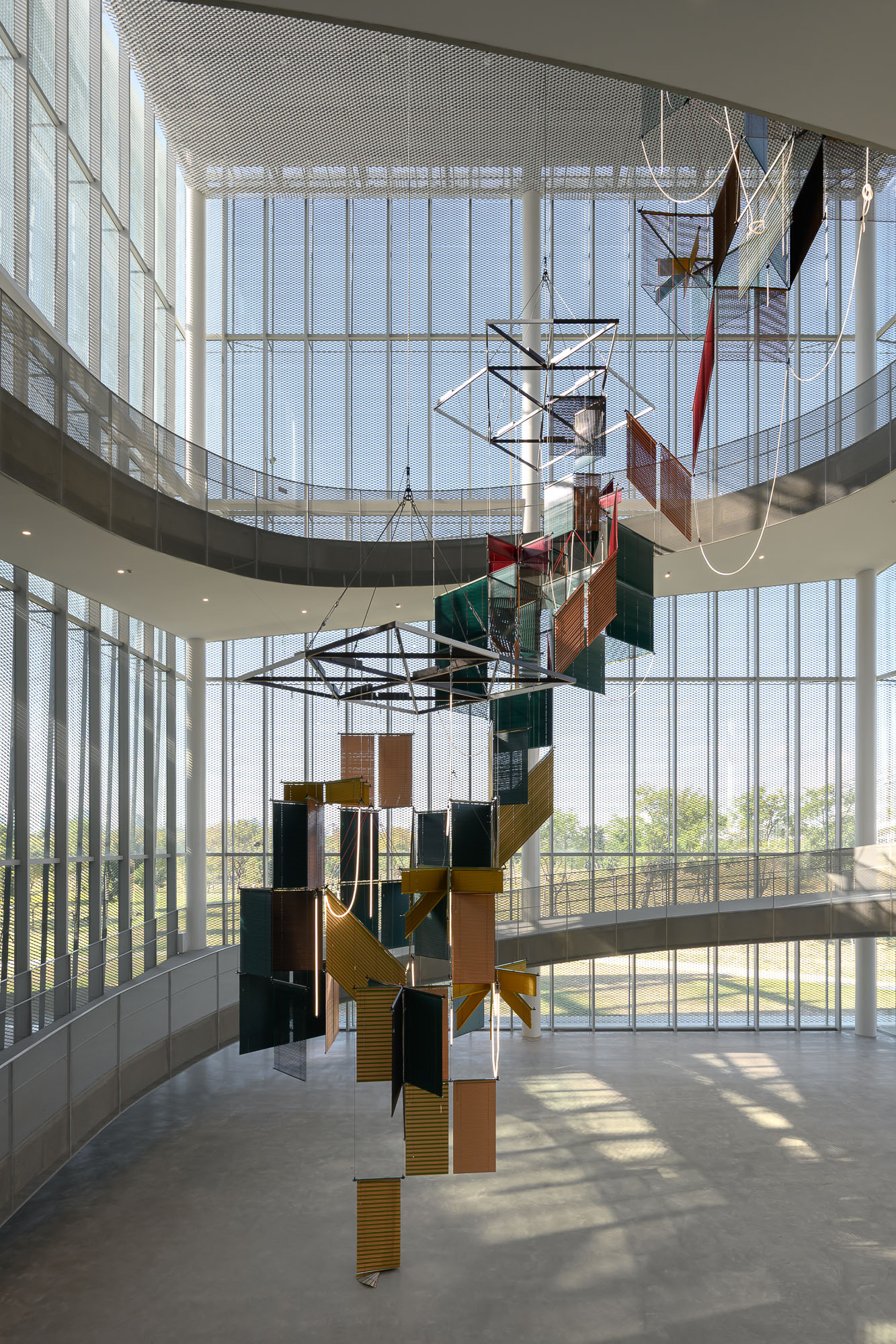 美術館大廳委託創作計畫仍免費參觀-作品為梁慧圭-haegue-yang-流動奉獻-樹蔭三合-2025